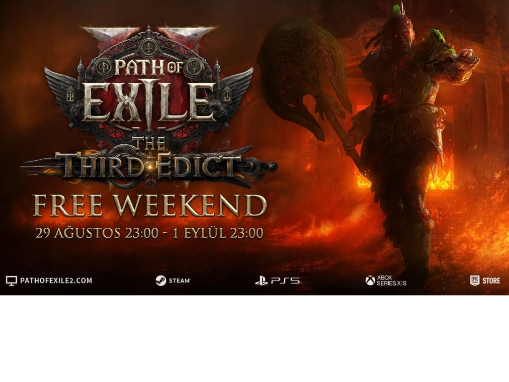 Path of Exile 2: The Third Edict, ücretsiz deneme fırsatı sunan Free Weekend etkinliğiyle geliyor. 29 Ağustos saat 23:00’dan 1 Eylül saat 23:00’a kadar sürecek etkinlik boyunca oyuncular, Erken Erişim paketi satın almadan oyunu deneyebilecek. Path of Exile 2; PC, Steam, PlayStation, Xbox ve Epic Games Store üzerinden erişilebilir durumda.